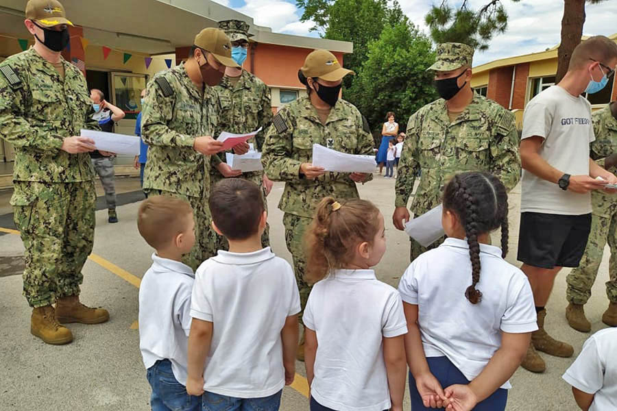 Primo giorno di scuola di festa grazie alla presenza dei volontari della Marina americana