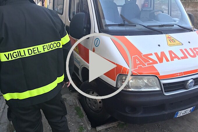 Incidente oggi a un mezzo di soccorso che trasportava un paziente ad una visita medica. Un pozzetto ha ceduto bloccando ...