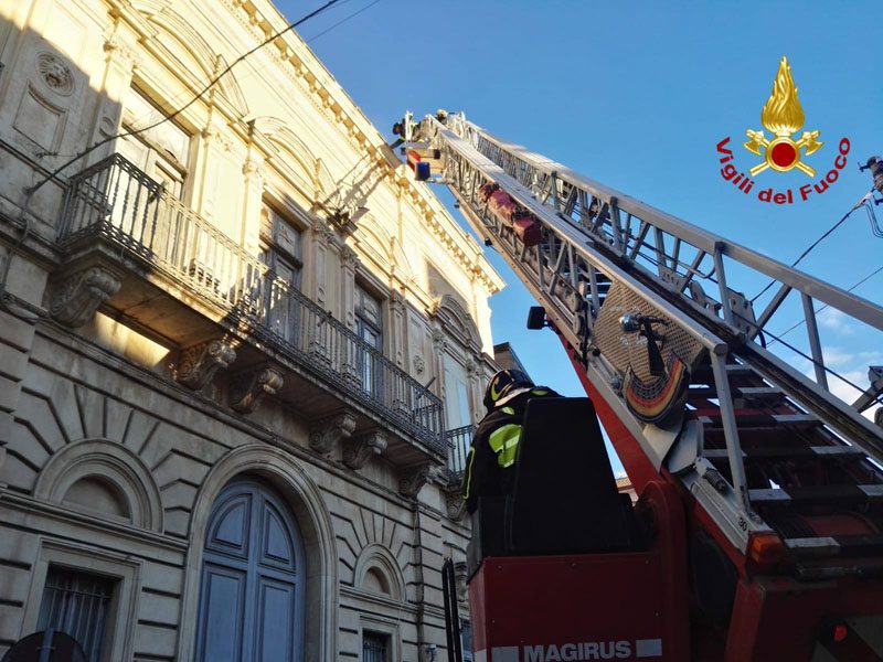 A Santa Maria di Licodia i danni maggiori li ha subiti Palazzo Ardizzone, che ospita la biblioteca comunale, dalla cui facciata principale si sono staccati, rovinando al suolo, una lunga striscia di cornicione in pietra bianca e parte degli intonaci. Crollata un’antica abitazione in pietra di via Carducci, fatiscente e non più abitata da tempo. Nessun danno al patrimonio edilizio religioso, con padre Santino Salamone che ha smentito distacchi di intonaci in chiesa madre. Illese anche le scuole che lunedì saranno regolarmente aperte. Il Coc (Centro operativo comunale di Protezione civile) è aperto alle istanze dei cittadini per la segnalazione di danni all’edilizia privata.