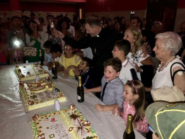 Sempre alle 19:00 di ieri, campane in festa a Biancavilla, bagno di fedeli e celebrazione eucaristica presieduta dallo stesso Don Giovambattista Zappalà, per ringraziare il Signore dei venticinque anni al servizio delle comunità parrocchiali della diocesi, alla presenza del clero locale e del vice sindaco Vincenzo Chisari. Quello di ieri ha rappresentato solamente uno di una serie di eventi religiosi che hanno avuto inizio lo scorso 7 settembre e che culmineranno domenica 8 ottobre con la celebrazione presieduta da Sua Eccellenza Salvatore Gristina, Arcivescovo della Diocesi di Catania. Durante questa solenne celebrazione, sarà celebrato – insieme al venticinquesimo sacerdotale di Don Zappalà – anche l’importante traguardo del settantacinquesimo anniversario dell’ordinazione di Padre Placido Brancato, storica figura sacerdotale biancavillese che sin da sempre si è speso in progetti di pastorale giovanile.